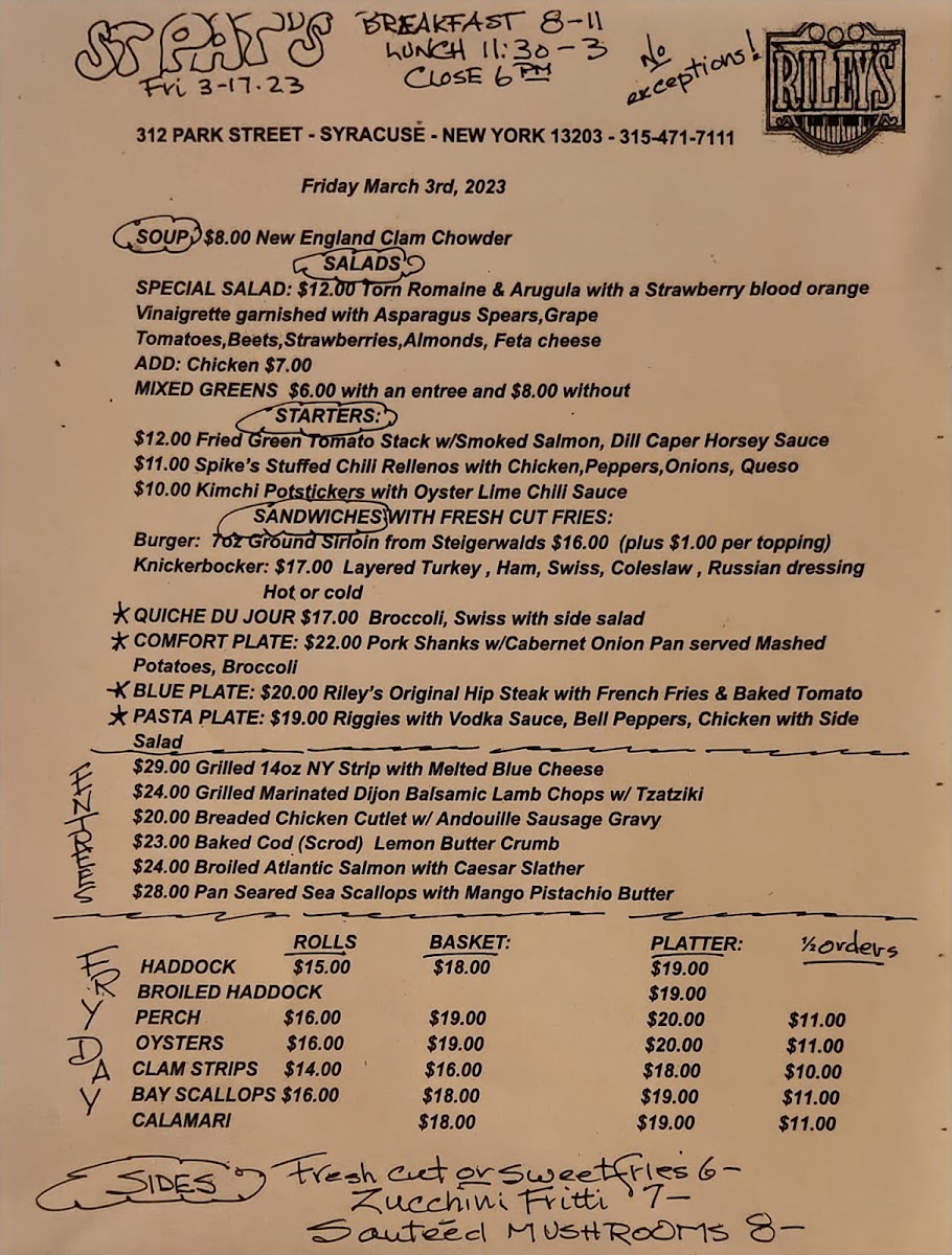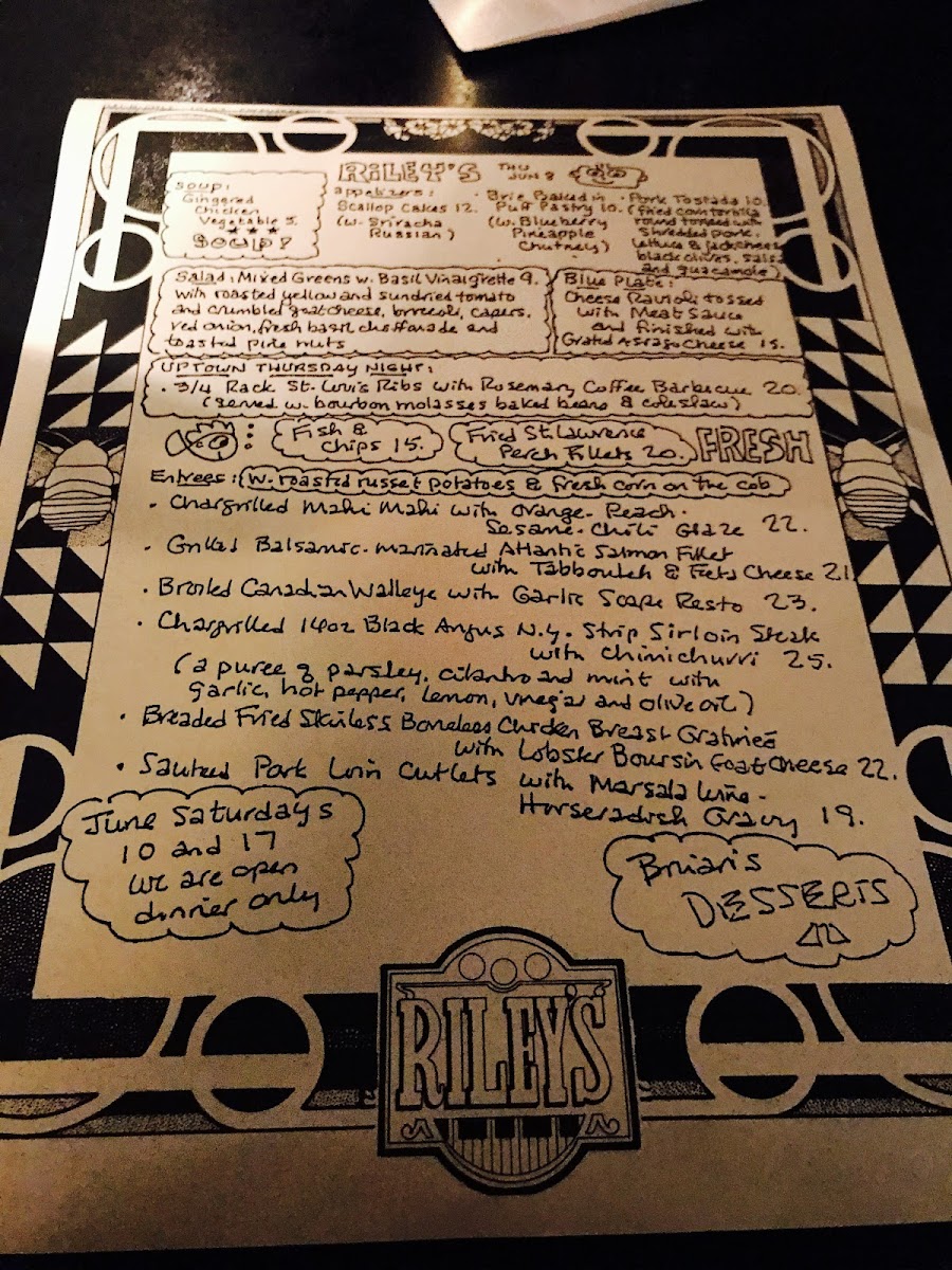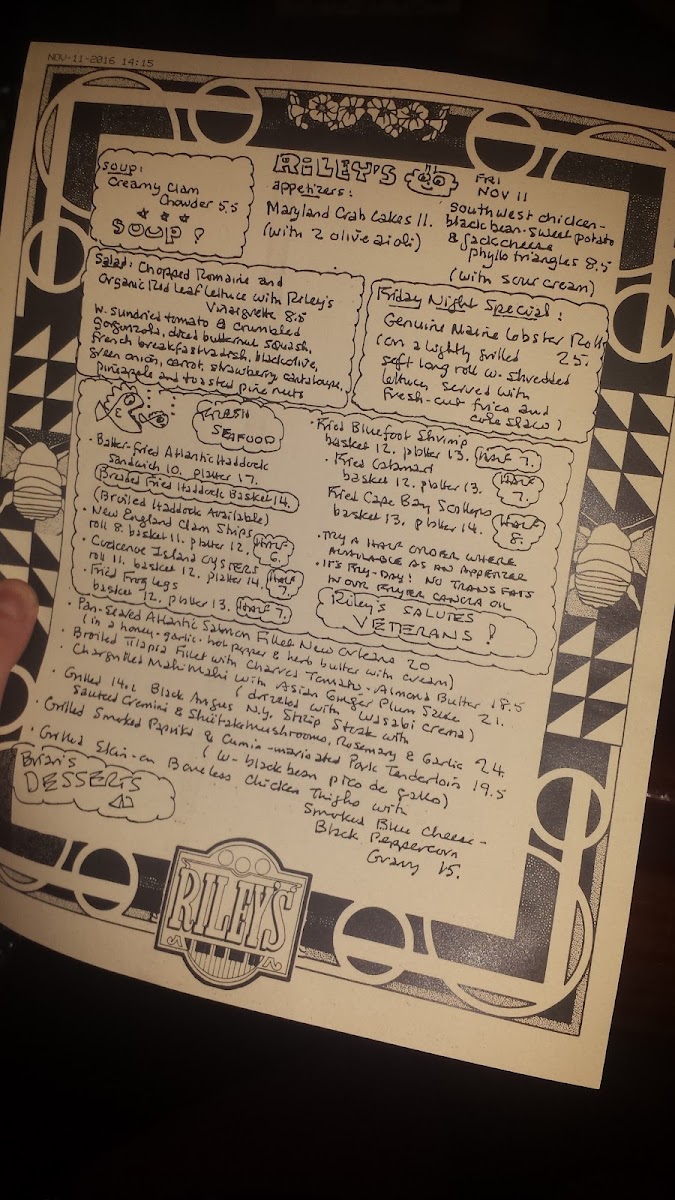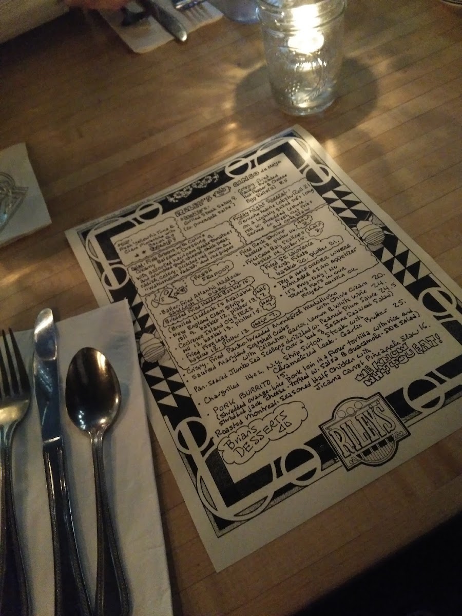 Riley's Menu